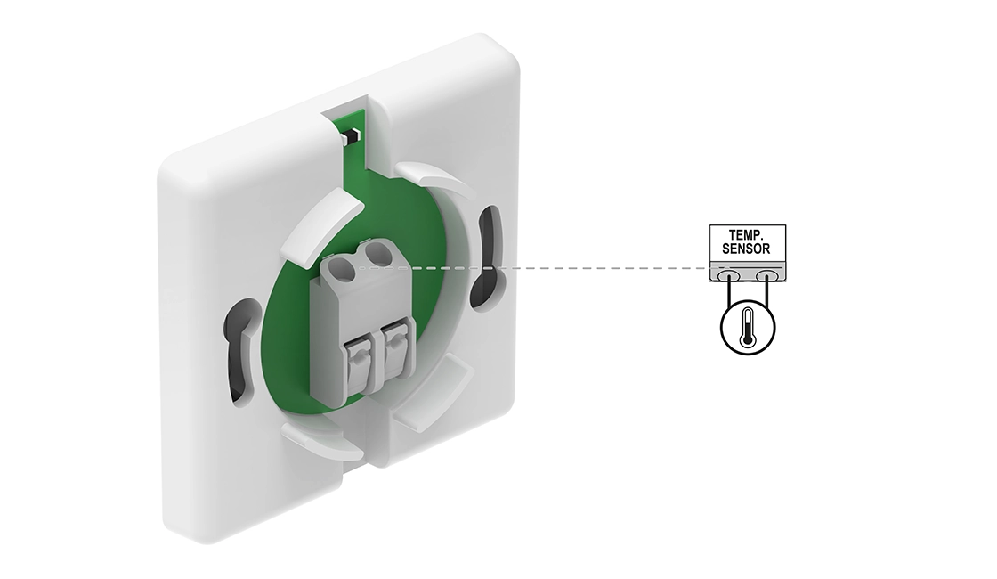 Der C-S1p ist ein dedizierter Temperatursensor, der kabelgebunden mit dem Steuerpanel CP-04m verbunden wird und anschließend die Informationen an die Sinum-Zentrale überträgt. Basierend auf seinen Messwerten steuert das System die Heizgeräte.