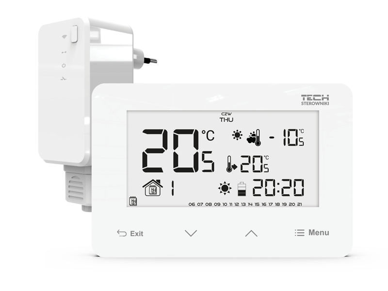Das Gerät EU-293 v2 arbeitet mit einem zusätzlichen Signalempfänger zusammen, der in der Nähe des Heizgeräts montiert ist. Während des Betriebs kommuniziert der Zweipunkt-Temperaturregler mit dem Heizgerät oder der Kesselsteuerung über ein vom Empfänger gesendetes Funksignal.
