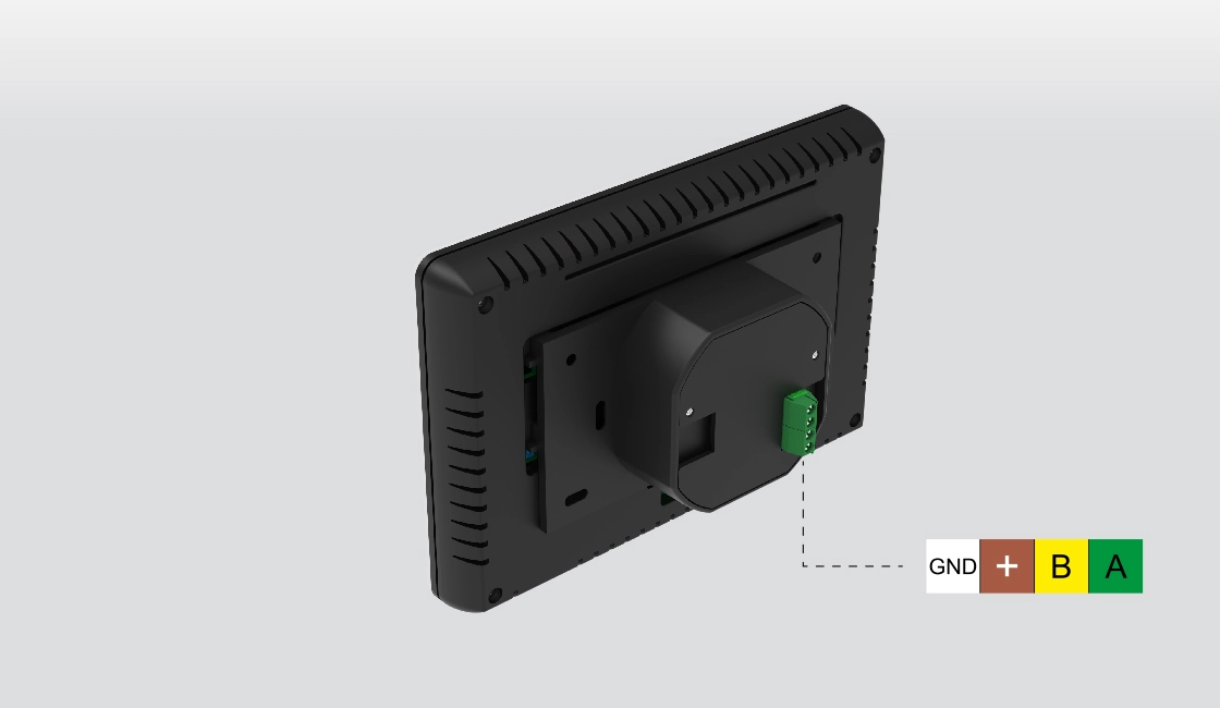 Das Bedienpanel kommuniziert über eine kabelgebundene RS-Verbindung mit dem Ausführungsmodul und gewährleistet so einen stabilen und schnellen Datenaustausch. Der Anschluss befindet sich auf der Rückseite des Geräts, wodurch das Kabel leicht innerhalb der Wand geführt werden kann. Die Installation erfordert keine zusätzliche Stromversorgung – Kommunikation und Stromversorgung erfolgen über eine gemeinsame Verbindung.