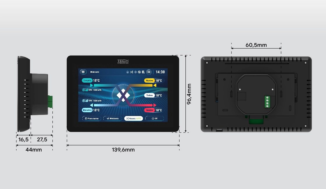 Das Unterputz-Bedienpanel ist eine moderne und minimalistische Lösung, die auf Benutzerkomfort und harmonische Integration in die Raumgestaltung ausgelegt ist. Dank einer Glasfront mit intuitivem Touch-Interface ermöglicht das Panel eine schnelle und präzise Steuerung des Lüftungssystems. Das integrierte Display zeigt die aktuellen Betriebsparameter des Geräts an, während das gesamte Design auf Langlebigkeit, einfache Bedienung und Ästhetik ausgerichtet ist.