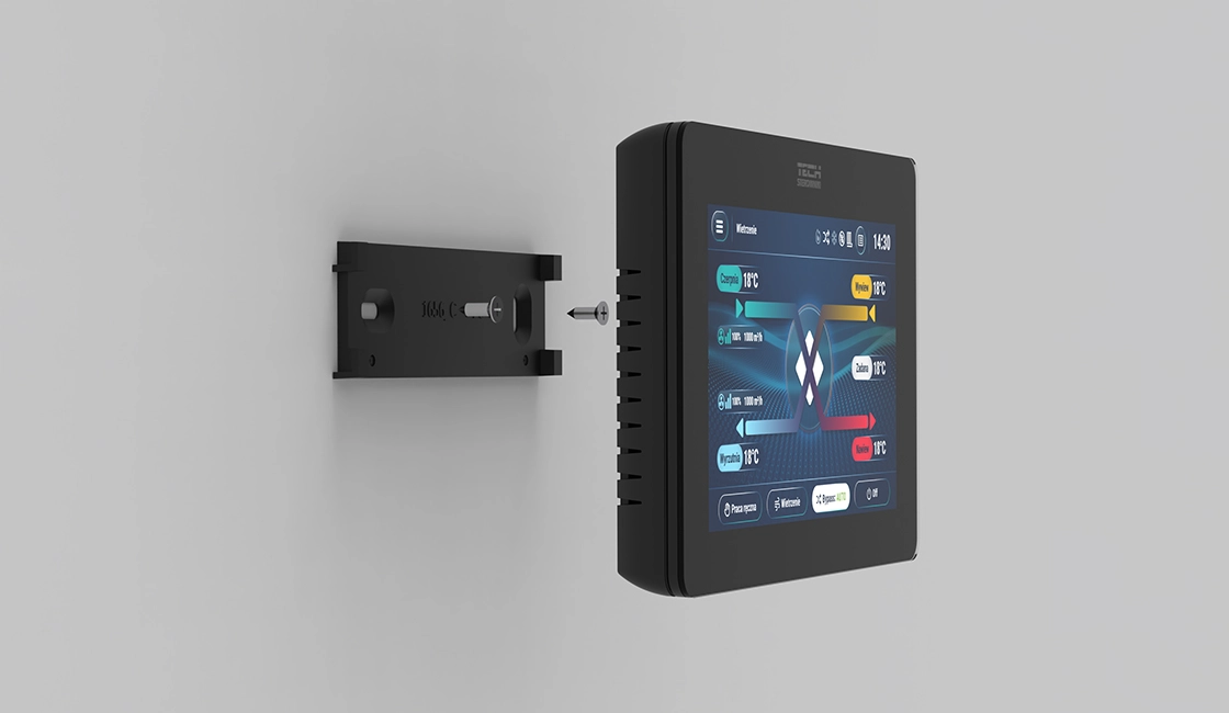 Das Aufputz-Bedienpanel ist für eine schnelle Montage vorgesehen, ohne dass Eingriffe in die Wandstruktur erforderlich sind. Das Gerät wird direkt auf der Wandoberfläche mittels einer speziellen Halterung oder eines Trägers installiert. Diese Art der Montage gewährleistet einen einfachen Servicezugang zum Panel und erfordert keine speziellen Werkzeuge oder das Vorbereiten einer Öffnung in der Wandstruktur.