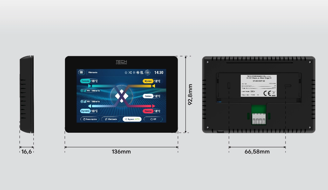 Die Aufputzversion des Steuerpanels wurde für eine schnelle und einfache Montage entwickelt, ohne dass Eingriffe in die Wandstruktur erforderlich sind. Ausgestattet mit einem modernen 5'' TFT-Touchdisplay ermöglicht es die intuitive Steuerung des gesamten Heizsystems.