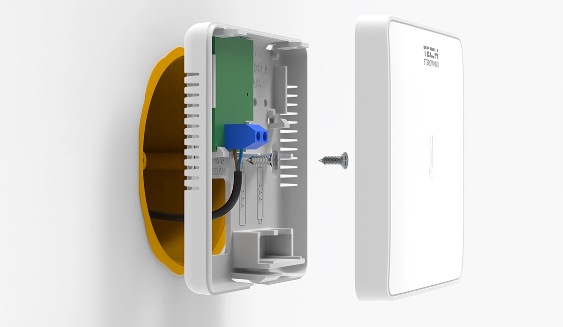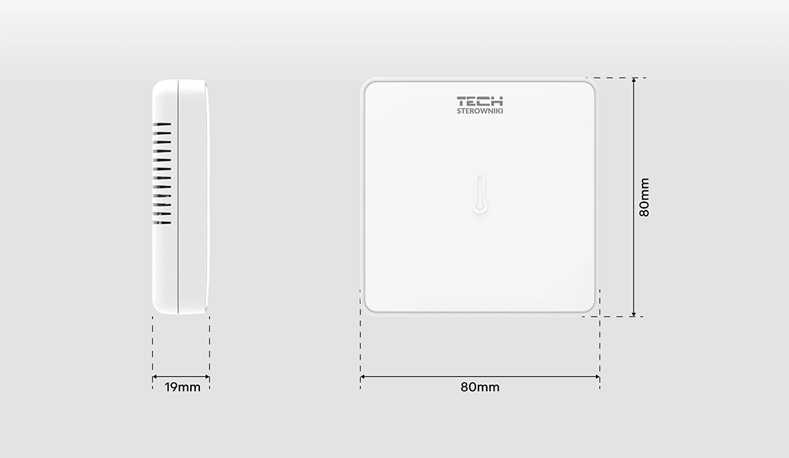 Der Sensor C-7p wurde kompakt gestaltet, was eine ästhetische Ausführung und eine ideale Anpassung an das Raumdesign gewährleistet. Dank des schlanken Gehäuses mit einer Tiefe von nur 19 mm präsentiert sich das Gerät modern und dezent an der Wand.