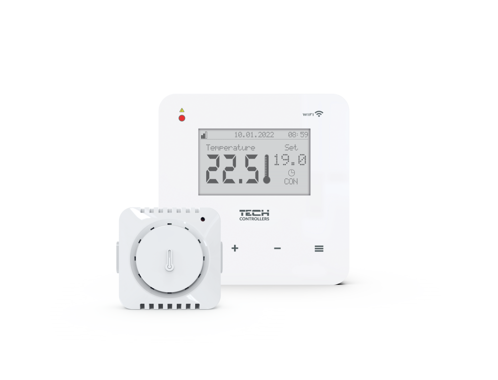 - Möglichkeit zum Anschluss eines kabellosen Sensors: EU-C-8r, EU-C-mini, EUCL-mini oder Raumregler: EU-R-8b, EU-R-8x, Eu-R-8z, EU-R-8b PLUS, EU-R-8s PLUS, EU-R-8pb PLUS, EU-R-8pz PLUS,