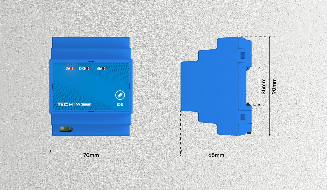 EX-S1 ist ein Gerät zur Erweiterung der Signalreichweite von kabellosen (WTP) Peripheriegeräten. Damit kann die Reichweite des Systems erweitert werden. Seine Aufgabe ist es, Informationen von den angeschlossenen Geräten zu sammeln und sie dann über WiFi oder LAN an das Hauptgerät - die Sinum-Steuerzentrale - zu senden.