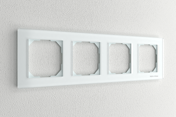 Die Glasrahmen ermöglichen die Konfiguration von Schaltfeldern und die Montage von Geräten in Standarddosen mit 60 mm Durchmesser, sowohl horizontal als auch vertikal. Mit ihnen können Lichtschalter, Raumregler oder Rollladenschalter frei konfiguriert werden, um die Installation an individuelle Bedürfnisse und Benutzerpräferenzen anzupassen. Dieses System bietet Flexibilität und Ästhetik und verbindet modernes Design mit Funktionalität.