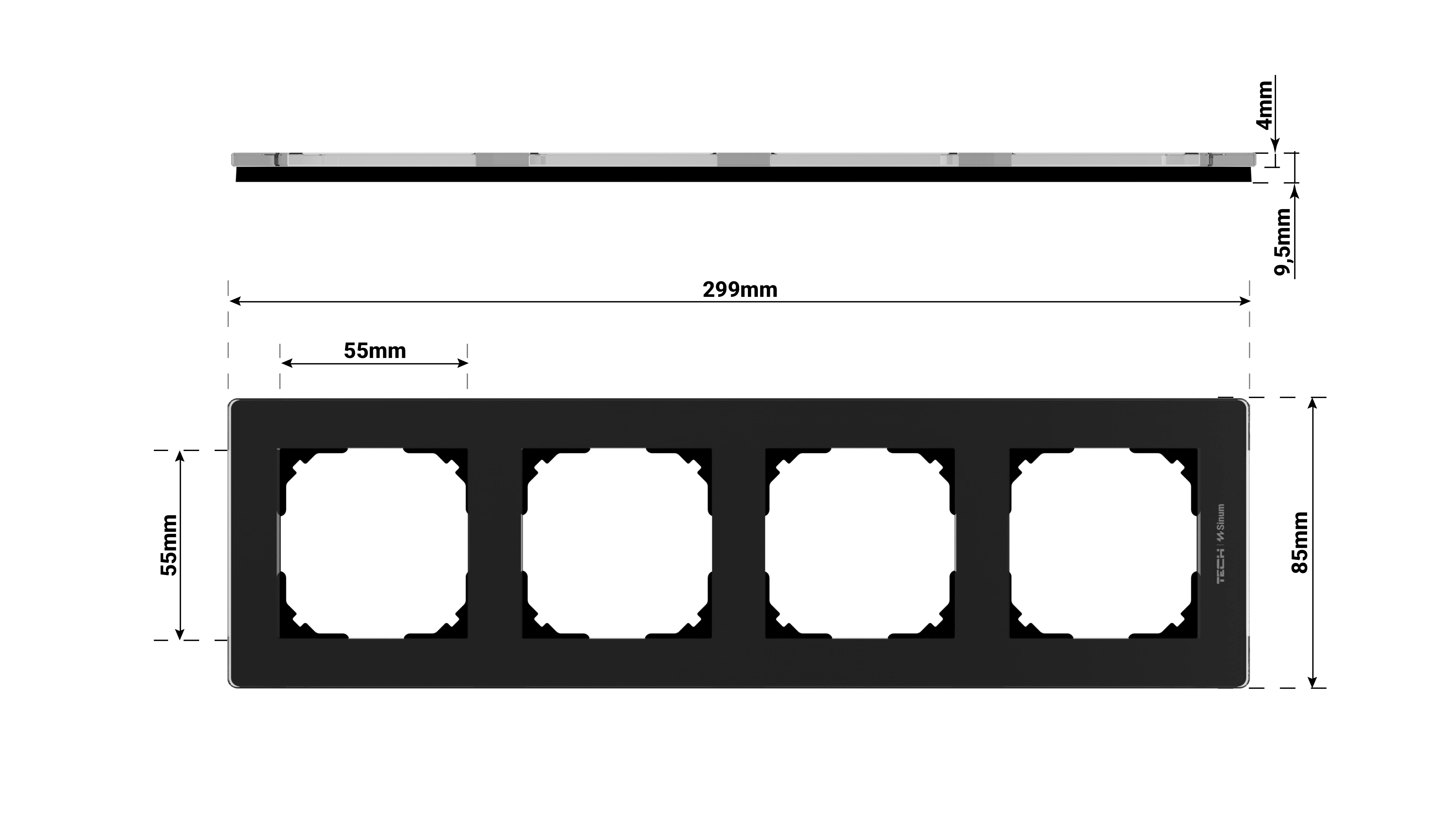 - Gesamtstärke des Rahmens: 9,5 mm