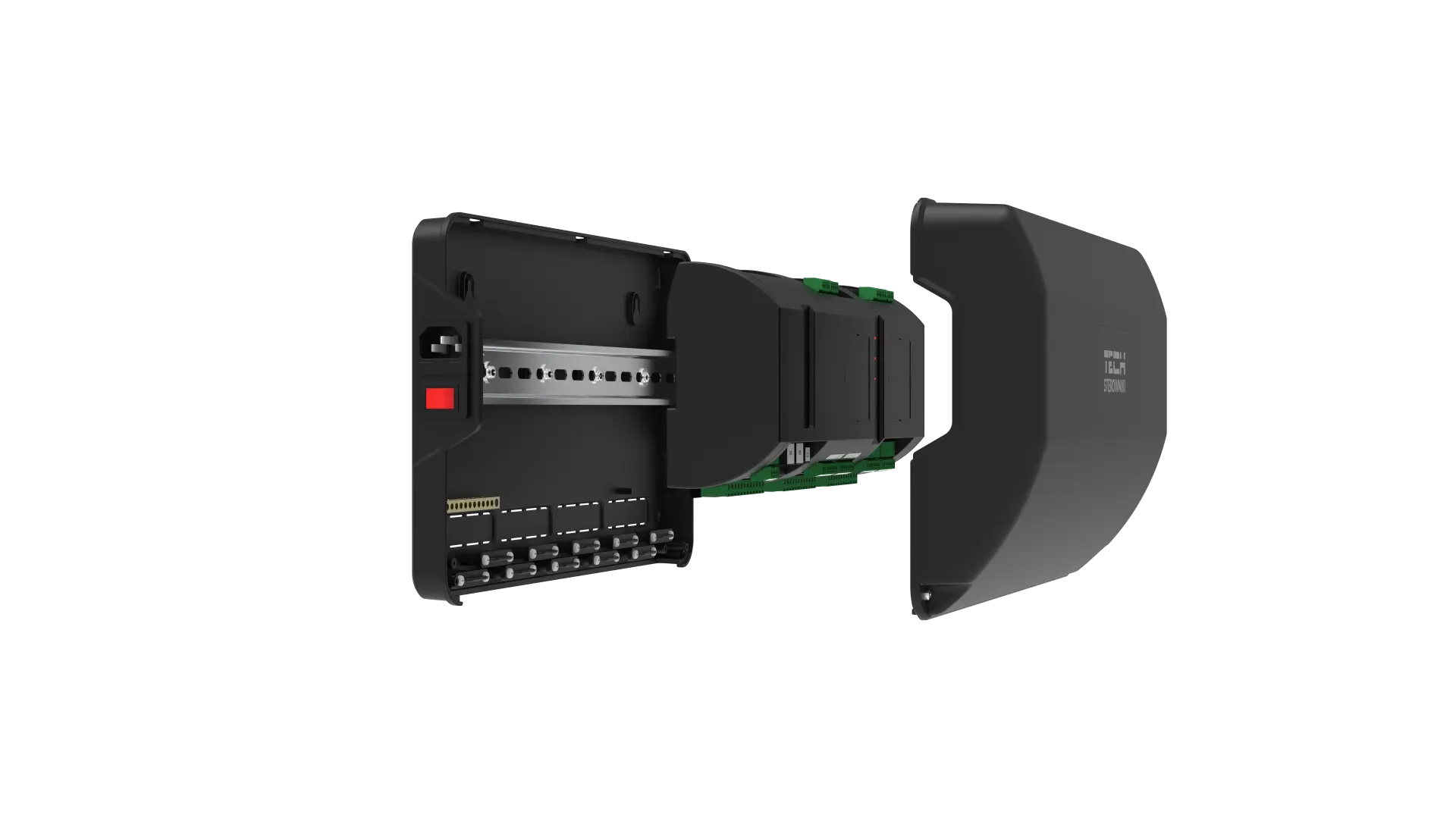 Das Gehäuse wurde mit Fokus auf Funktionalität und Ästhetik entwickelt – es bietet eine elegante Abdeckung für das Ausführungsmodul und schützt gleichzeitig dessen Komponenten. Im Inneren befindet sich eine standardisierte DIN-Schiene, die eine einfache und normgerechte Befestigung des Geräts ermöglicht.