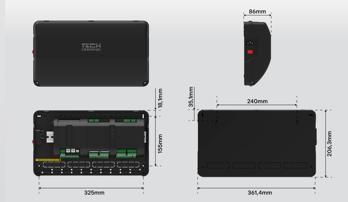 - Außenmaße des Gehäuses: 361,4x206,3x86mm