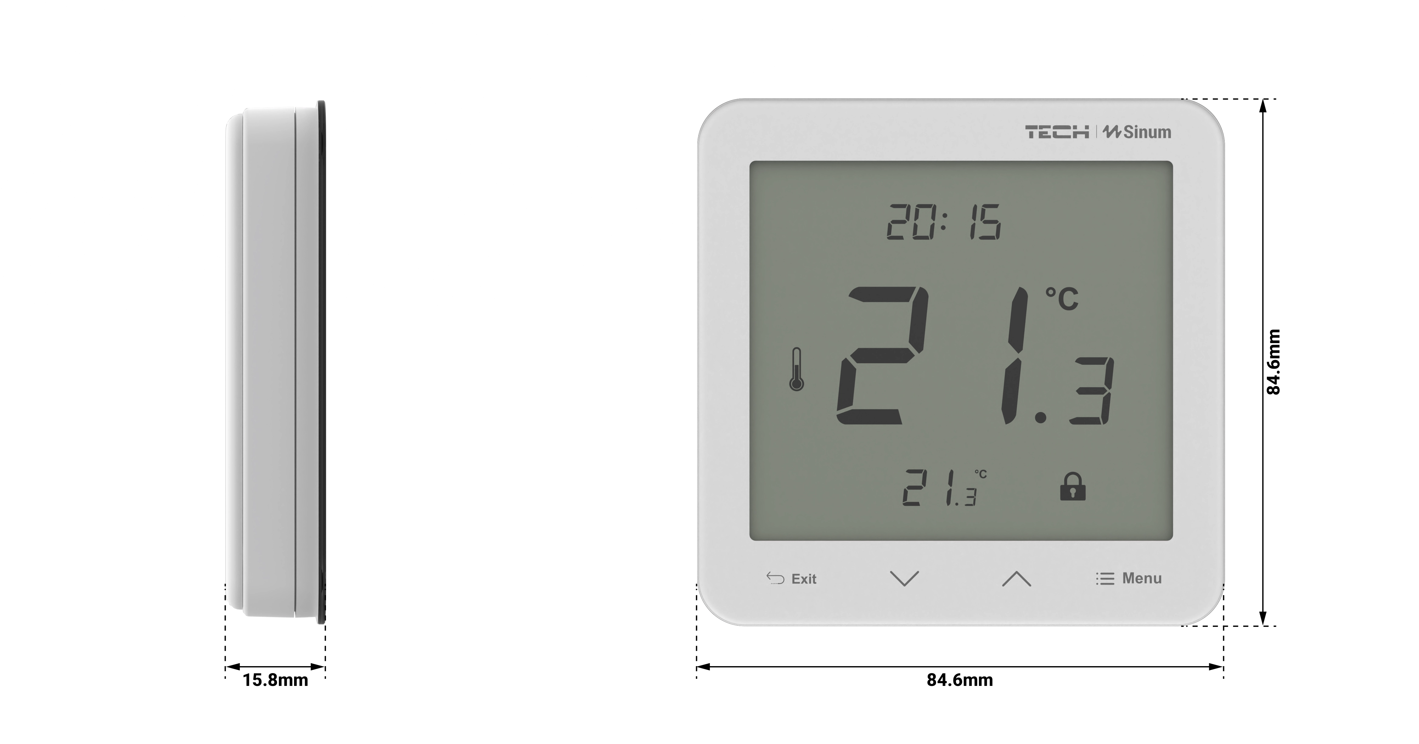 - Bodentemperatur – präzise Anzeige der Fußbodenheizungstemperatur.
